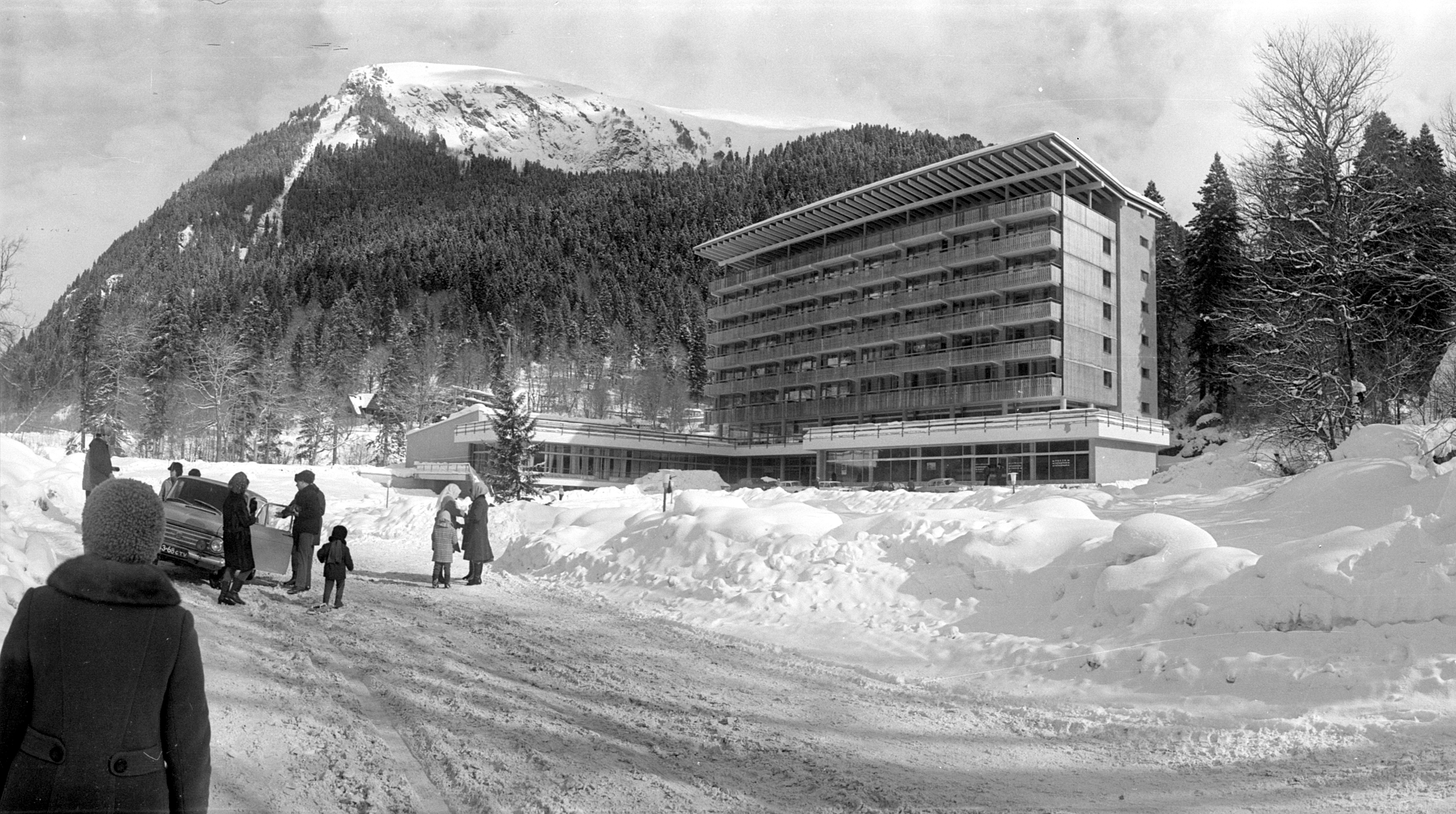 Таким образом, в конце 60х в Домбае закипела стройка: строились меленькие объекты и две большие гостиницы курорта — наш спортивно-оздоровительный комплекс «Домбай» и гостиница «Горные Вершины»