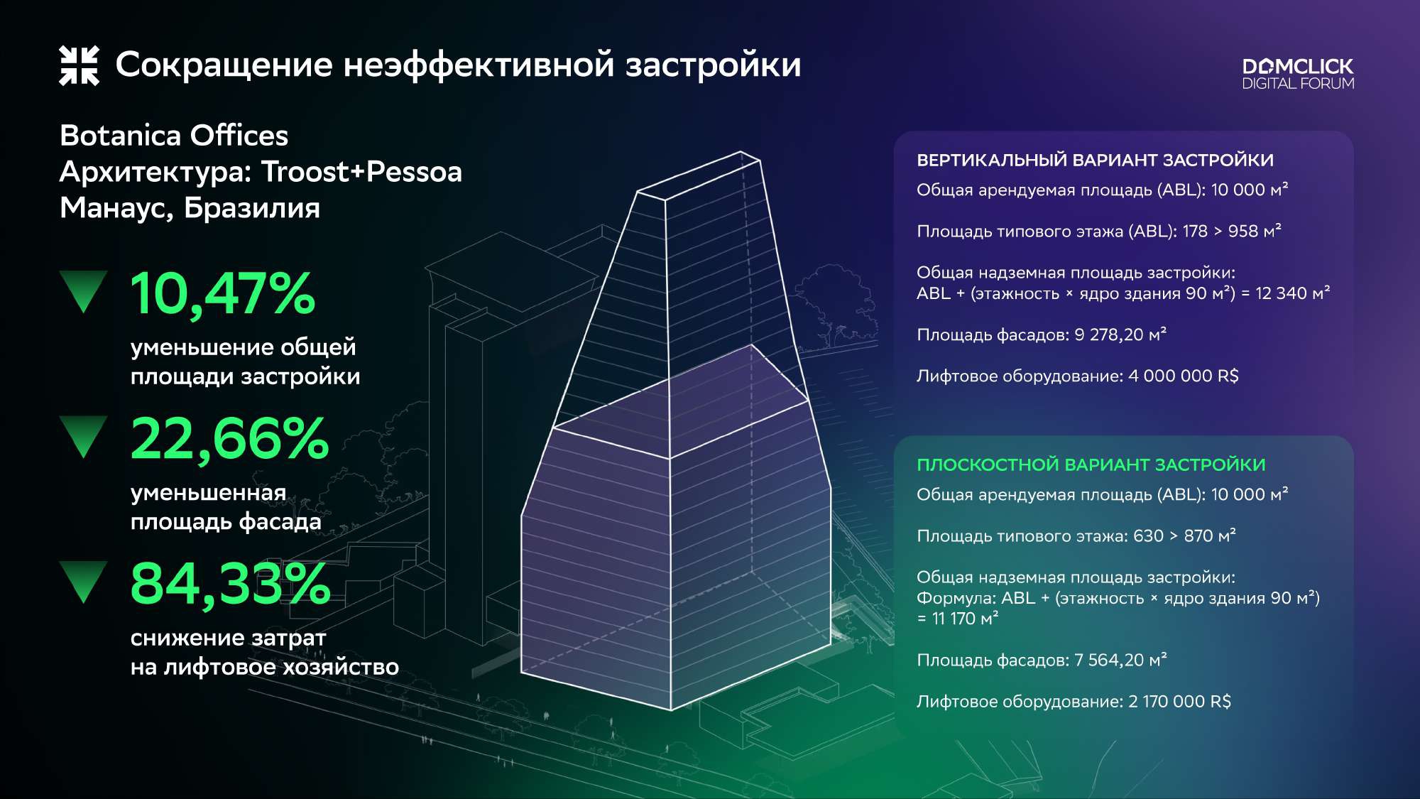 В одном из наших проектов мы взяли за архитектурный ориентир знаменитое здание «Роза Эмиратов», но адаптировали его с точки зрения экономики. Мы оптимизировали площадь фасада, так как в подобных объектах это самая дорогая статья расходов, а также внедрили более эффективные и менее затратные лифтовые решения, сохранив при этом эстетическую и функциональную ценность объекта.
