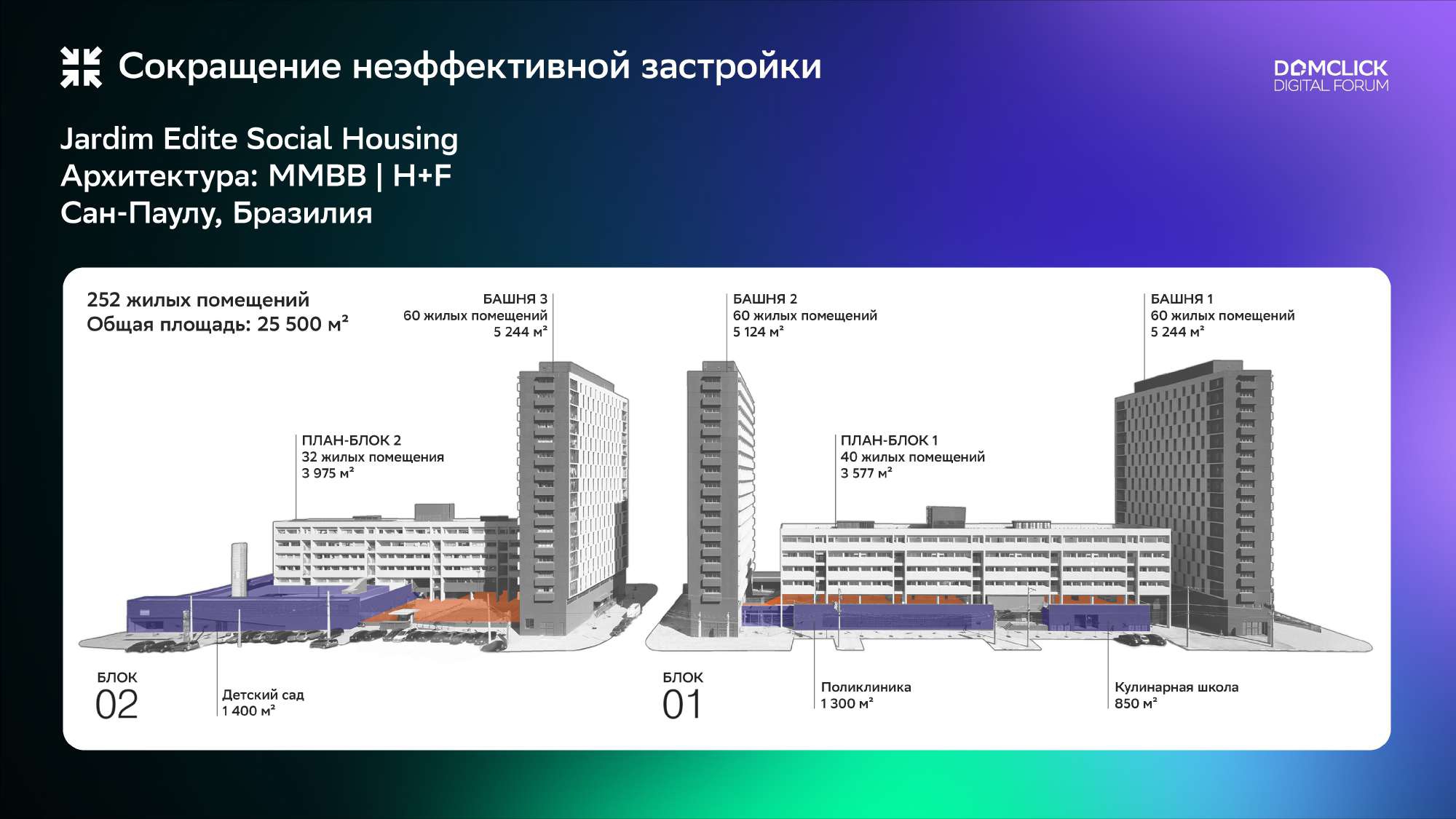 Другое важное направление — социальное жилье. В Сан-Паулу мы работали с депрессивной зоной, фактически граничащей с фавелами. Наше предложение заключалось в создании многофункционального комплекса, где в одной точке сосредоточена вся необходимая инфраструктура: детские сады, поликлиники и семейные апартаменты. Проживание здесь субсидируется государством, что позволяет интегрировать качественную социальную среду в городскую ткань.
