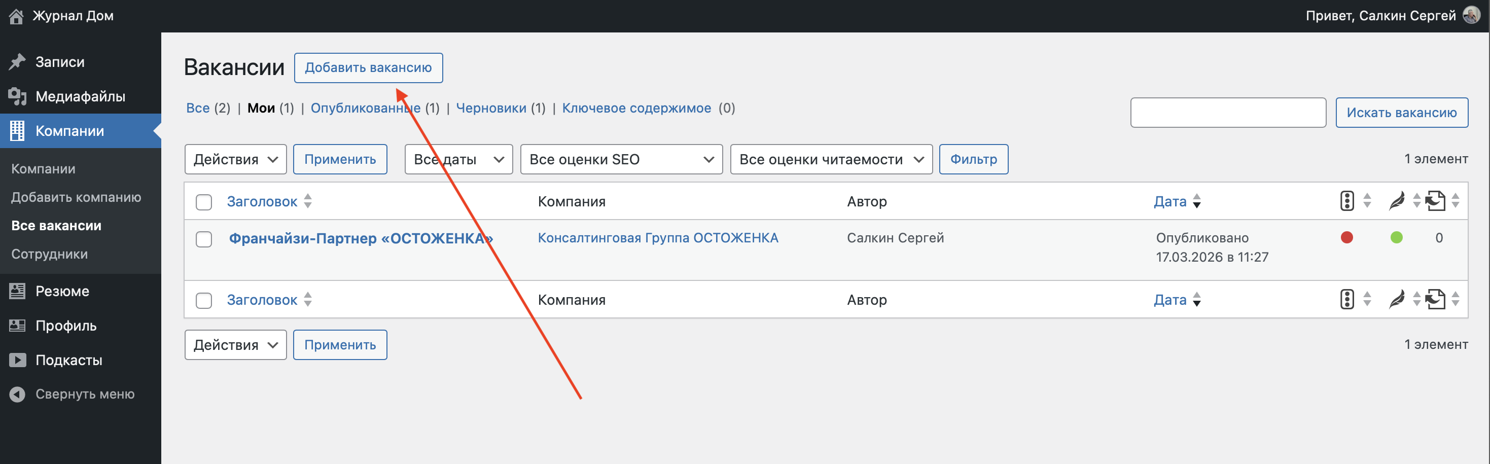 В открывшемся окне выберете «Добавить вакансию»