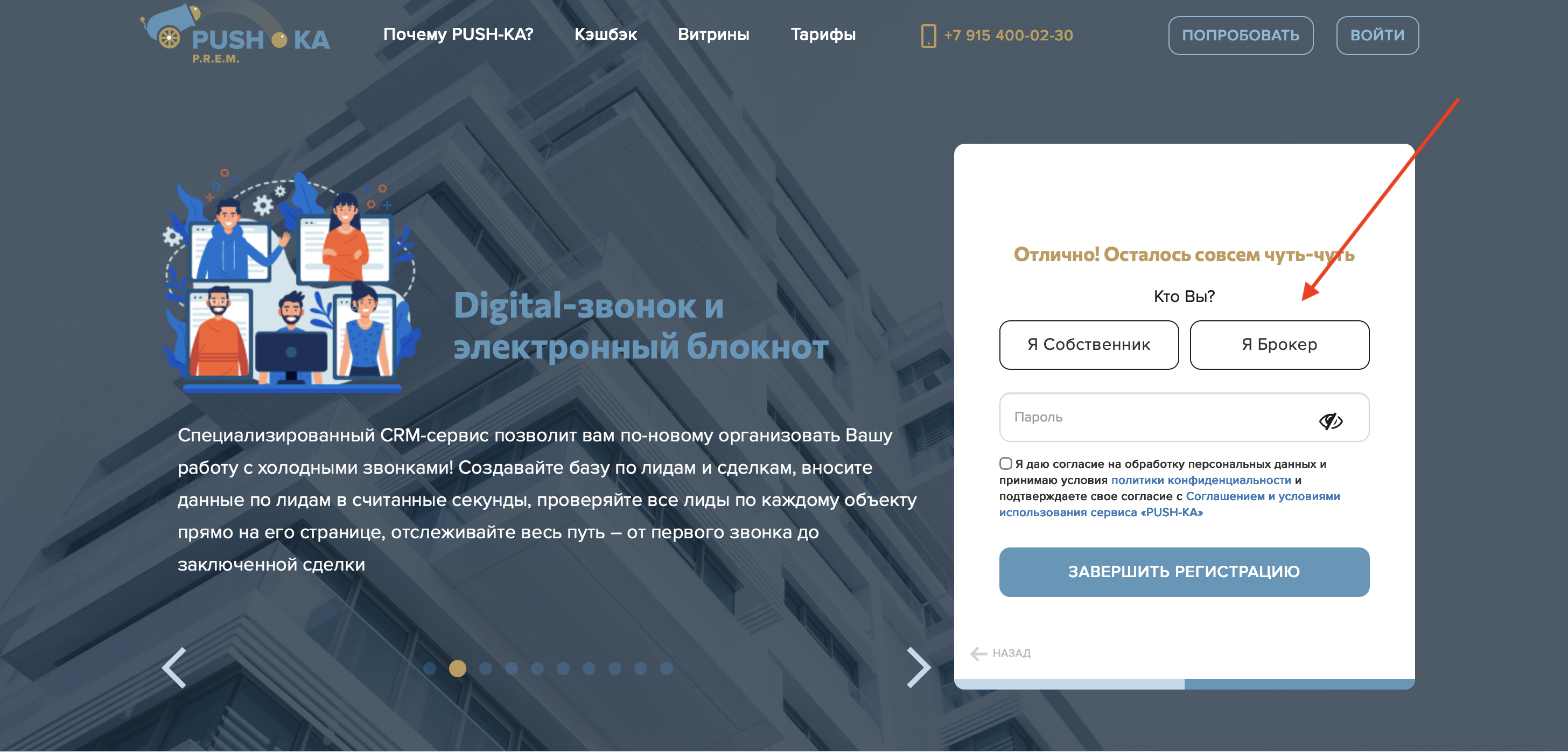 При регистрации в PUSH-KA ваша регистрационная роль «Я Брокер» (в случае если вы риелтор)