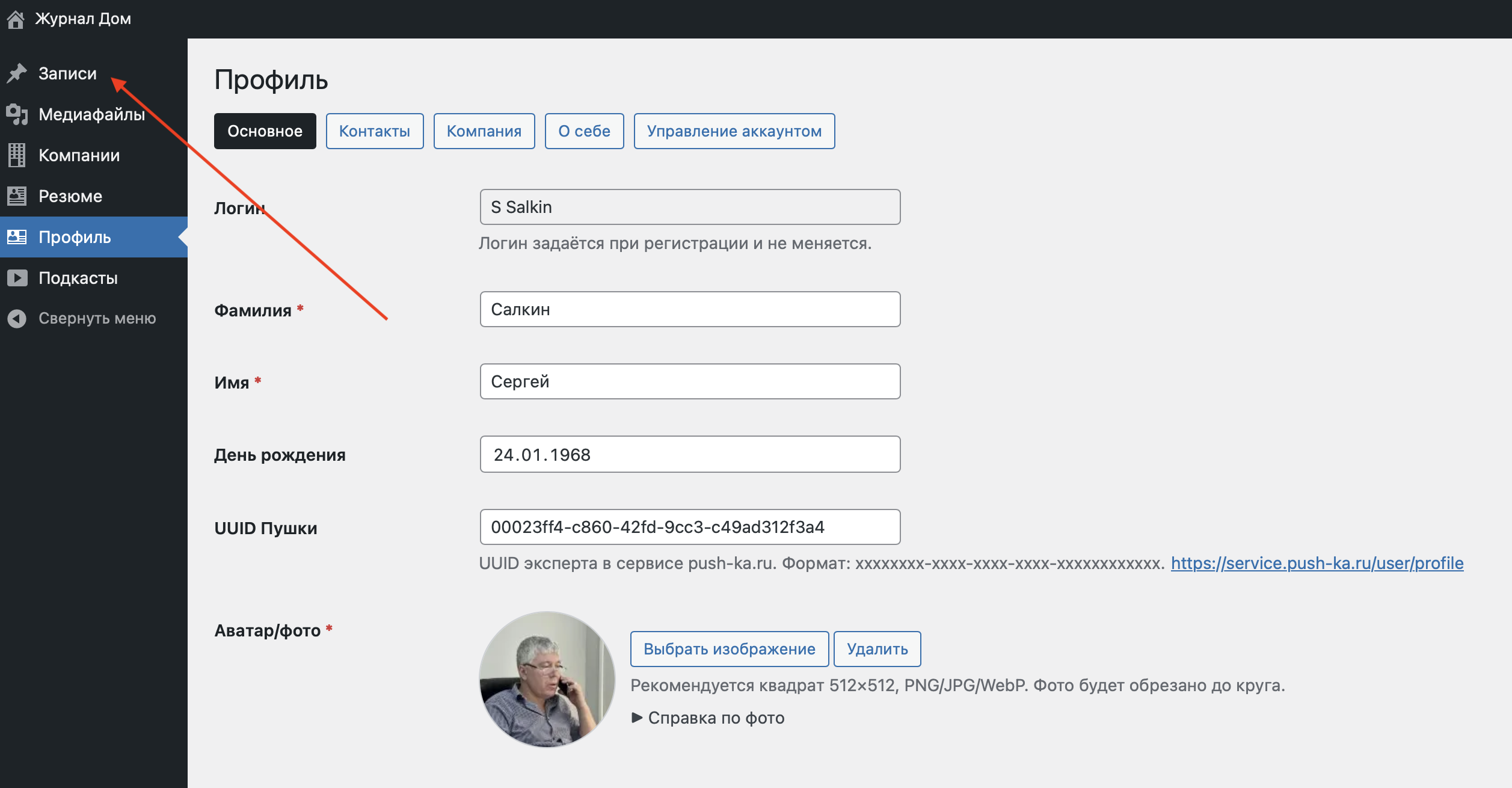 Зайдите в свой профиль
