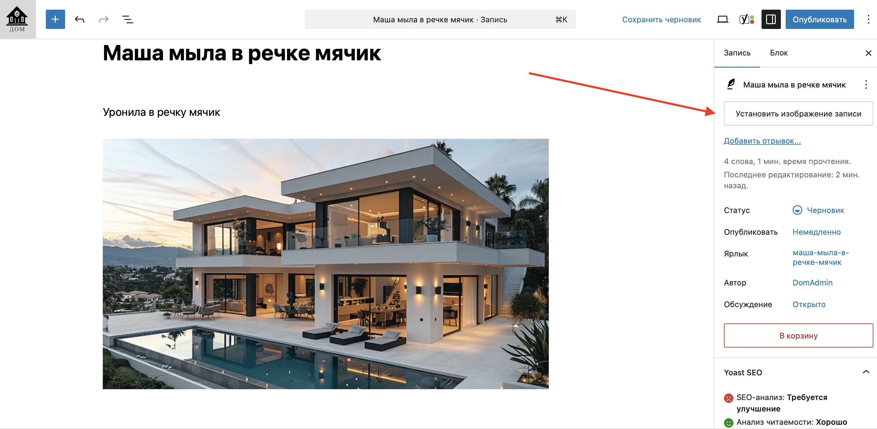 Разместите изображения записи (статьи). Обычно изображение записи является первым изображением в теле статьи.