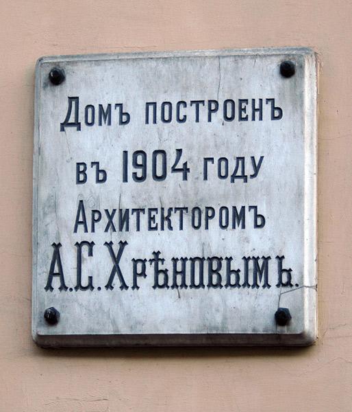 На стене дома установлена мемориальная доска с указанием года постройки (1904) и имени архитектора.