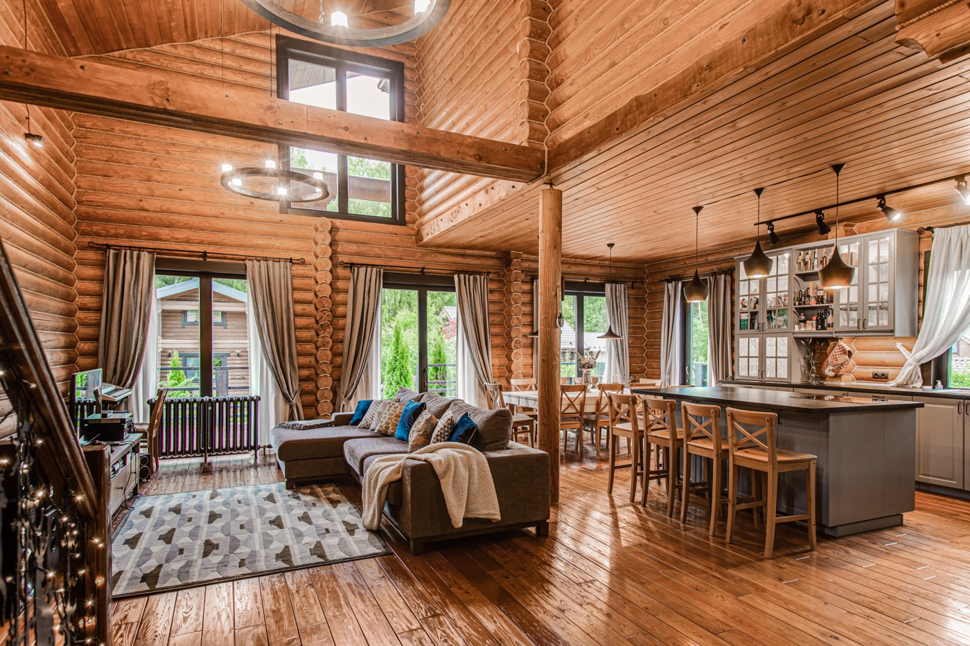 Домовладение составляли: основной деревянный дом, гостевой дом с русской баней и гараж с хозяйственным блоком, а также с подогреваемым бассейном на улице. Продуманный проект, включая планировочное решение и дизайн интерьера, были ключевыми факторами, облегчившими продажу. Распределение строений на участке и благоустройство также добавили проекту уникальности и современности. Все эти элементы в совокупности создали не только красивый, но и функциональный дом, способный удовлетворить потребности самого взыскательного покупателя.