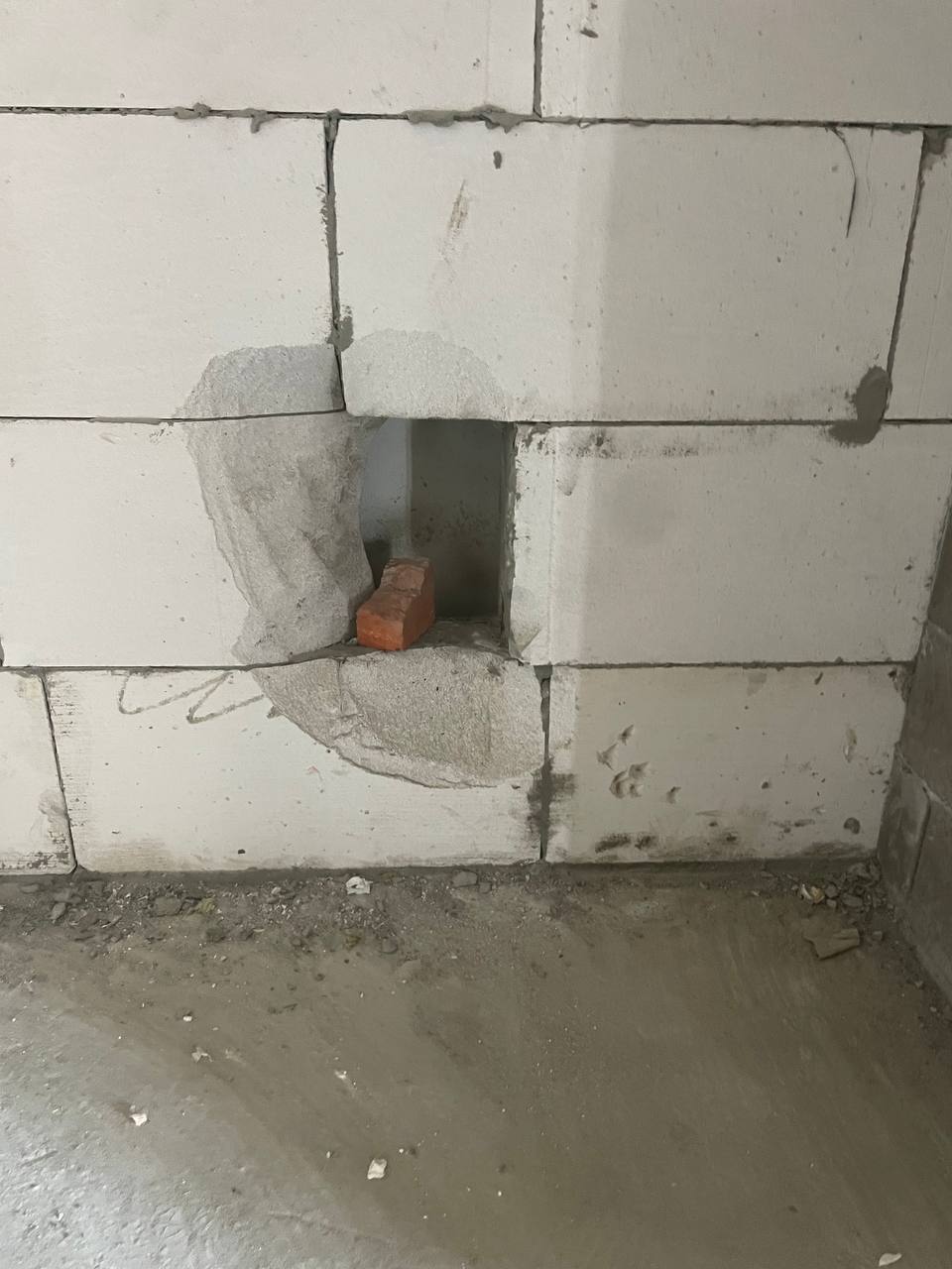Фото говорят сами за себя. Дыра в стене, краны горячей и холодной воды текут, трубы отопления уже покрыты ржавчиной, зазор дверей ( можно бесконечно отапливать улицу), пожарное оборудование не укомплектовано, отсутствует отопление в помещении, стеновые блоки лежат без раствора (а зачем раствор? И так сойдет), уклон стен не выдерживает никакие стандарты…