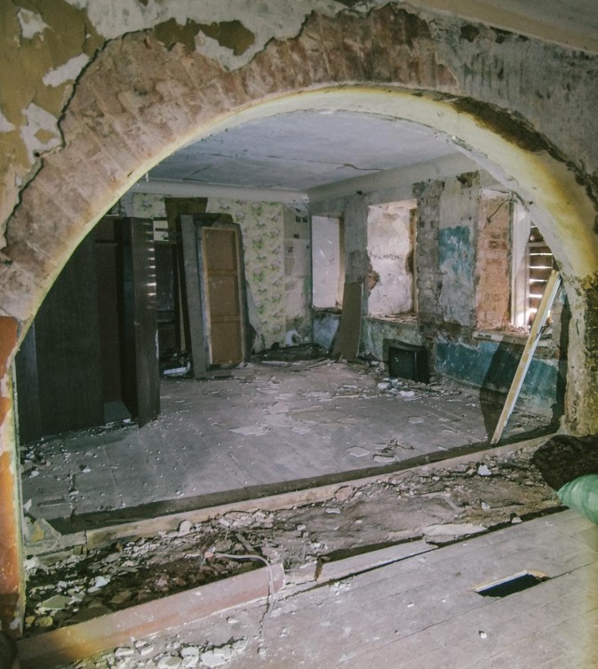 Это хороший пример того, что не всегда нужно много ресурсов, чтобы что-то начать делать в пусть и заброшенном доме. Он стоял до этого там три года открытый, заваленный мусором: шприцы, следы собак, бомжей, все это было. А потом мы выиграли небольшой грант — 50 тысяч рублей на ремонт и на краску. Но получилось так, что он сыграл очень важную роль, потому что через этот грант мы получили экспертизу нашего проекта и нашли классного архитектора Петра Шутова.